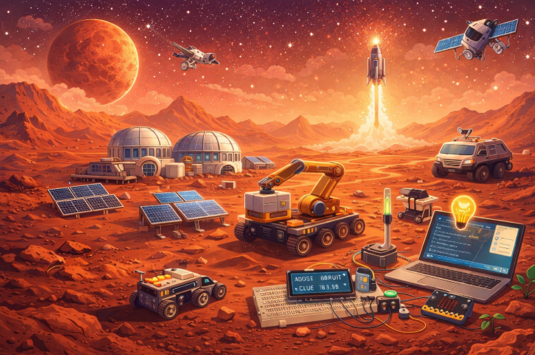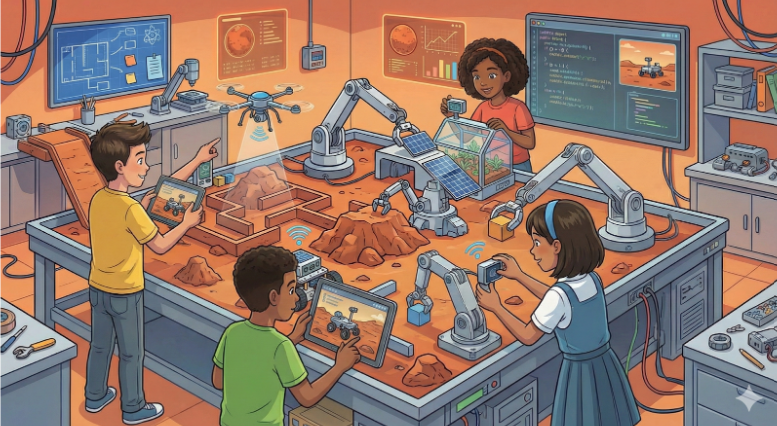 The “IoT and Modern Applications” educational program invites middle school students on a journey of technological exploration, starting from Mars. Inspired by the real scientific and technological challenges that accompany the colonization of another planet, students are called upon to think about how smart and reliable systems can be designed for life and research in extreme environments.
