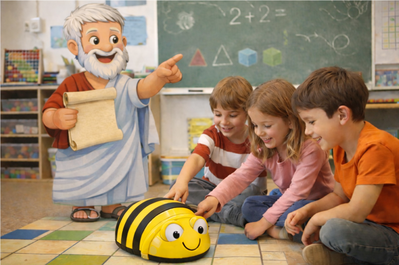 The adventure continues as Thales introduces numbers (1–10) and our first mathematical operations, while concepts such as symmetry, area, and volume become familiar to children through observation. By programming their little “bee,” children do not just learn coding; they learn to collaborate, solve problems, and think critically, building strong foundations for their future in the most enjoyable way!
