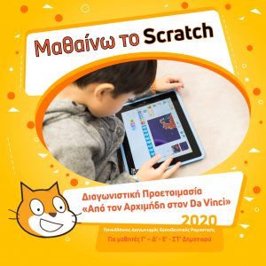 Το πρόγραμμα Scratch είναι σχεδιασμένο να παρέχει προχωρημένη γνώση προγραμματισμού στους μαθητές των τελευταίων τάξεων του δημοτικού, πέραν της εισαγωγής στην ρομποτική. Το πρόγραμμα είναι επίσης σχεδιασμένο να παρέχει προχωρημένη γνώση προγραμματισμού στους μαθητές των τελευταίων τάξεων του δημοτικού, πέραν της εισαγωγής στην ρομποτική. Επιπλέον είναι άμεσα συνδεδεμένο με τους διαγωνισμούς ρομποτικής του WROhellas και το Codeathon το Let’s Scratch διδάσκει στους μαθητές τον αλγοριθμικό τρόπο σκέψης και το δομημένο προγραμματισμό. Μάθε τώρα το Πρόγραμμα Scratch και μπορείς να συμμετέχεις στην διαγωνιστική κατηγορία του Πανελληνίου Διαγωνισμού Εκπαιδευτικής Ρομποτικής με θέμα "Από τον Αρχιμήδη στο Da Vinci " Παίρνοντας ως πηγή έμπνευσης τις εφευρέσεις από τον Αρχιμήδη μέχρι και τον Da Vinci, «πειράξτε» τις, αλλάζοντας είτε την μορφή ενέργειας που χρησιμοποιούν για να λειτουργήσουν, είτε τον τρόπο με τον οποίο ελέγχονται (από μηχανικούς αυτοματισμούς σε προγραμματιζόμενους). Εξελίξτε τις εφευρέσεις και δημιουργήστε τη δική σας «πρωτότυπη μηχανή» που να εντάσσεται σε ένα ευρύτερο λειτουργικό θέμα, ενσωματώνοντας τεχνολογίες της εποχής μας. Γίνεται ο εφευρέτης του εικοστού πρώτου αιώνα!